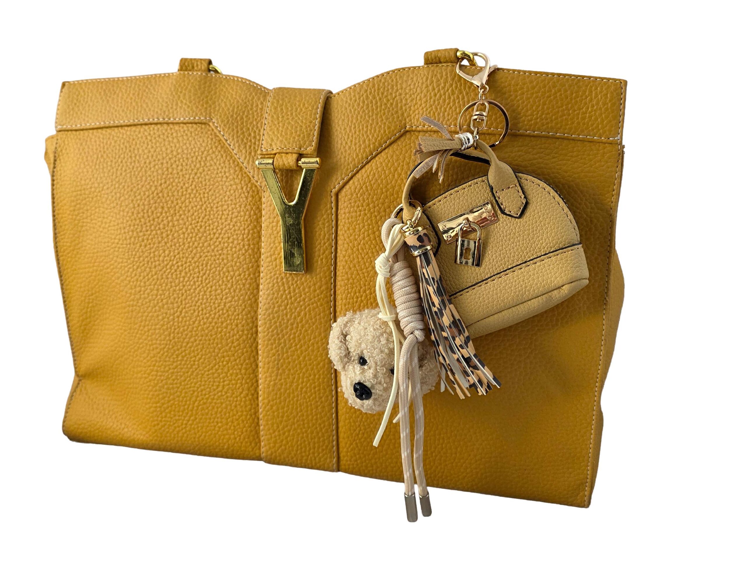 De neutrale tinten maken deze charm super stijlvol, terwijl de speelse elementen zorgen voor een glimlach bij elke blik op je tas. Subtiel chic, maar met karakter.